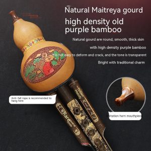 The acoustic heart of the instrument is a carefully selected, naturally dried gourd that serves as a resonating chamber. Extending from the gourd are three premium high-fiber purple bamboo pipes, chosen specifically for their dense material and excellent acoustic resonance. The natural variations in the bamboo and gourd mean that your instrument is completely unique to you.